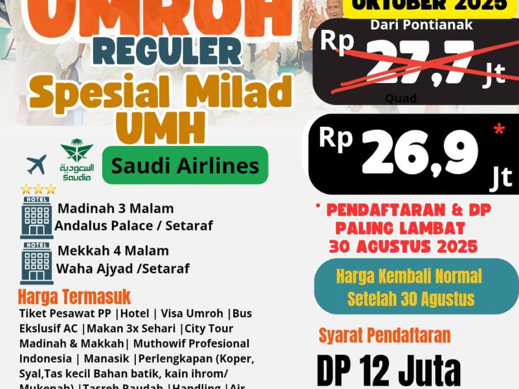 - Pelunasan Biaya maksimal 1,5 bulan sebelum keberangkatan