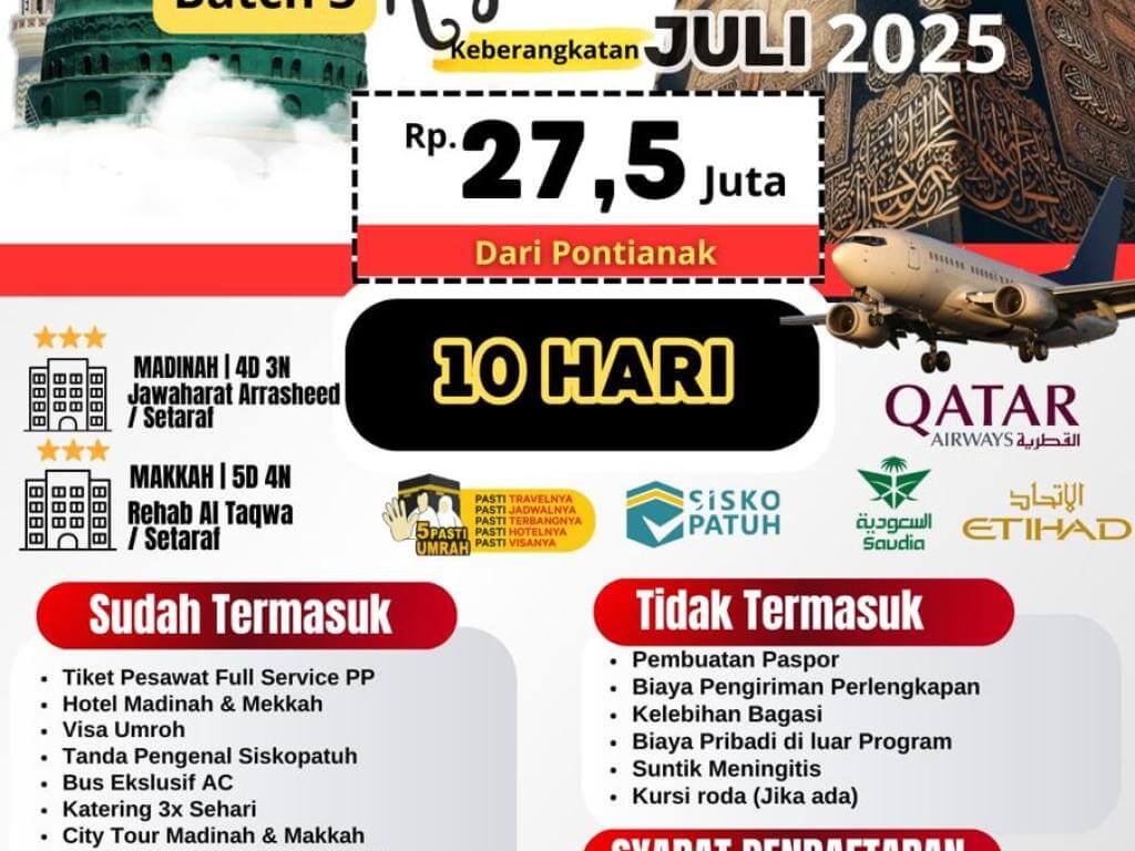 - Pelunasan Biaya maksimal 1,5 bulan sebelum keberangkatan
