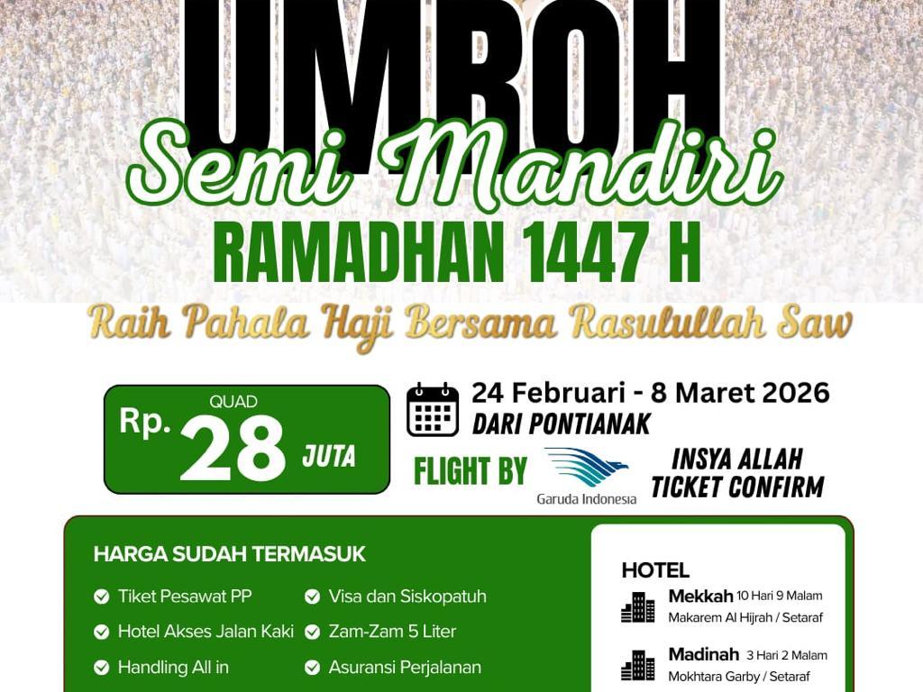 Umroh Semi Mandiri Ramadan 1447 H Start Pontianak