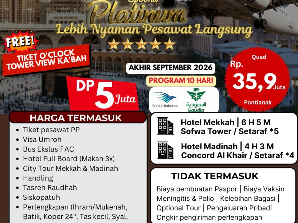 Umroh Paket Platinum Free Tiket O'Clock Tower Akhir September 2026